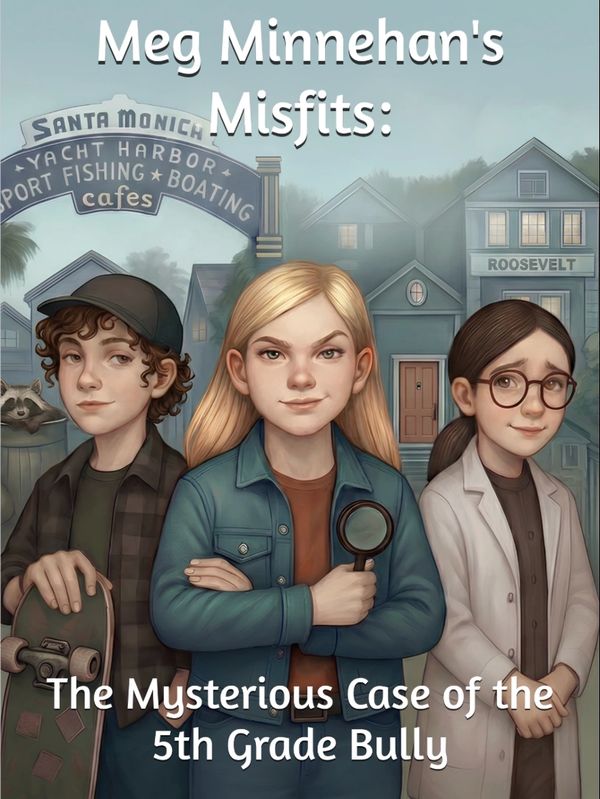 Eleven-year-old Meg and her two friends don’t fit in: Alyssa dresses like a boy; Fee has an accent; and Meg, who wants to be a private investigator when she grows up, is taller than everyone in her class. With the help of witty Alyssa and sweet, intelligent Fee, the three misfits traipse all over the beach town of Santa Monica, California, in pursuit of their goal: taking down the bully. Hijinks and hilarity ensue, along with lessons learned in how to survive the 5th grade.